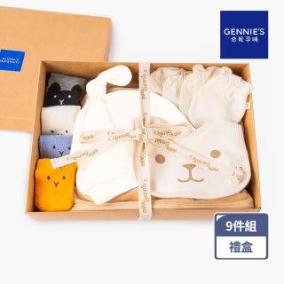 【Gennies 奇妮】小熊森林探險祝福禮盒9件組(口水兜+寶寶帽+手套+長襪+嬰兒被)