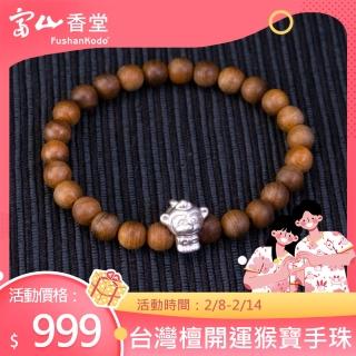 【富山香堂】開運保平安生肖手珠_台灣檀香開運猴銀寶手串珠(台灣老山檀長命百歲除穢送禮消災)