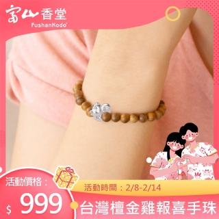 【富山香堂】招財報喜生肖手珠_台灣檀香金雞報喜銀寶手串珠(台灣老山檀長命百歲除穢送禮消災)