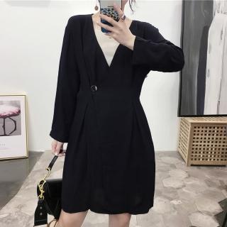 【BBHONEY】韓版修身氣質黑色薄款修身中長外套(韓風氣質外套)