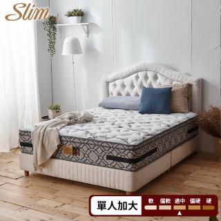 【SLIM奢華紓壓型】銀離子蠶絲乳膠記憶膠獨立筒床墊(單人加大3.5尺)