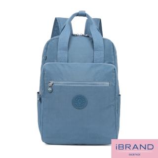 【iBrand】輕盈防潑水手提口袋尼龍後背包(牛仔藍)