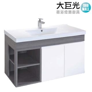 【大巨光】門片白色結晶鋼烤/發泡板側板貼古巴硬木美耐板/斜把手/三門浴櫃(ST-L-100)