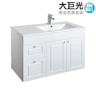 【大巨光】櫃體防水實心發泡板/雙側貼白色結晶板/雕刻造型晶采烤雙門浴櫃(LI-B-90T)