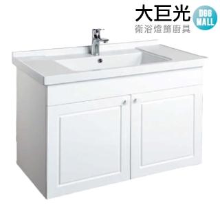 【大巨光】櫃體防水實心發泡板/雙側貼白色結晶板/雕刻造型晶采烤雙門浴櫃(LI-B-90Q)