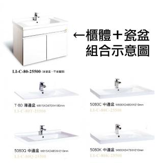 【大巨光】櫃體防水實心發泡板/貼白色結晶板/鋁封邊崁鋁把手雙門浴櫃(LI-C-80)