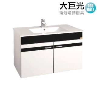 【大巨光】櫃體門片防水實心發泡板/櫃體雙側貼雪白及純黑結晶板鋁封邊/雙門浴櫃(SN-90T)
