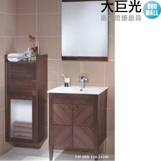 【大巨光】櫃體防水實心發泡板/雙側貼原木色防水美耐板/胡桃木門片/不含腳柱浴櫃(NH-08B-T60-N)