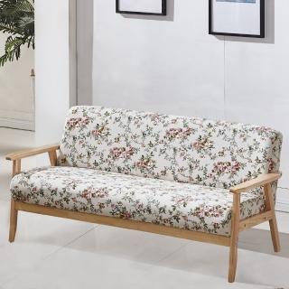【AT HOME】北歐鄉村田園實木白碎花布質三人沙發(伊芙)