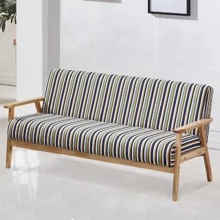 【AT HOME】北歐經典直條紋實木布質三人座沙發(哥倫)