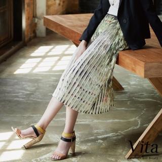 【mysheros 蜜雪兒】VITA 鬆緊腰多摺花紋長裙(綠)