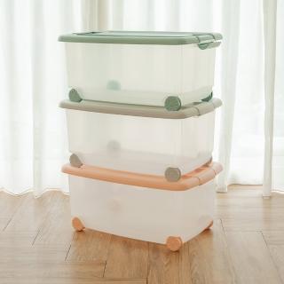 【ikloo 宜酷屋】輕柔色系滑輪收納整理箱收納箱45L(3入)