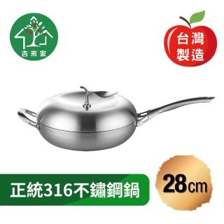 【吉來家】台灣製〜316不鏽鋼專利蘋果平底鍋28cm-附鍋蓋★送鍋鏟(蘋果造型/網美最愛/一體成形)