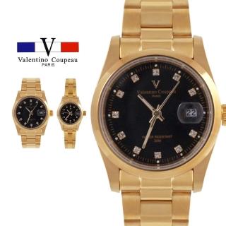 【Valentino Coupeau】黑面晶鑽簡約金帶不鏽鋼殼帶男女手錶-e(范倫鐵諾 古柏 VCC)