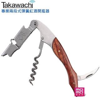 TAKAWACHI 頂級彈簧兩段式木柄紅酒開瓶器(全木柄 / 錫箔切割、啤酒、葡萄酒開瓶三合一)