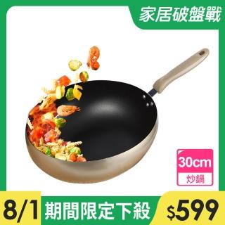 【廚藝寶】麥飯石回飛翻炒IH不沾鍋炒鍋30cm(電磁爐適用)