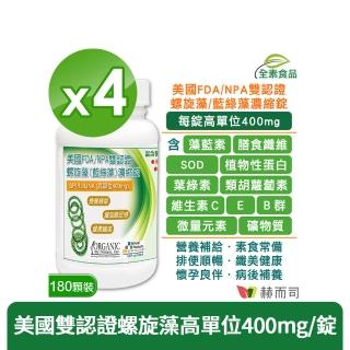 【赫而司】螺旋藻/藍綠藻400mg高單位180錠*4罐(增加飽足感排便順暢美國ONS藍藻全素食懷孕婦哺乳酸性體質)