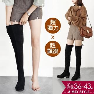 【Amay Style 艾美時尚】女鞋 膝上靴 高彈力不掉筒過膝靴。36-43加大碼(六款跟高.現+預)