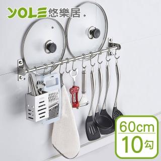 【YOLE 悠樂居】304不鏽鋼免釘可打孔廚房掛桿掛勾架60cm-10勾#1132067-2