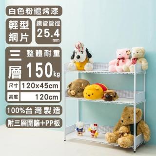 【dayneeds 日需百備】輕型 120x45x120公分烤漆三層架 附圍籬及PP板(鐵力士架/收納層架/展示架/層架/鐵架)