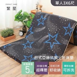 【R.Q.POLO】日式亞藤抗菌三折床墊/厚度5公分/繁星(單人)