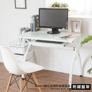 【完美主義】品味強化玻璃工作桌-附鍵盤架/書桌/辦公桌/電腦桌(二色可選)
