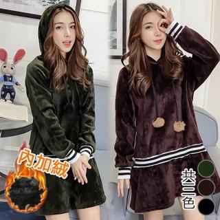 【KEITH-WILL】韓系俏皮毛球造型加絨連帽洋裝(共3色)