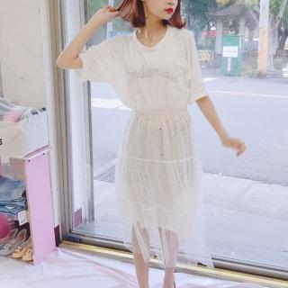 【BBHONEY】韓版夢幻網紗亮晶晶字母連身裙洋裝(網美熱搜款)