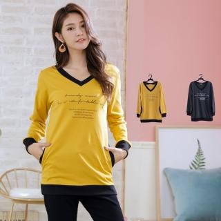 【衣心衣意中大尺碼】現貨-V領燙印立體感英文字母上衣(黑色 黃色TD1A2037)