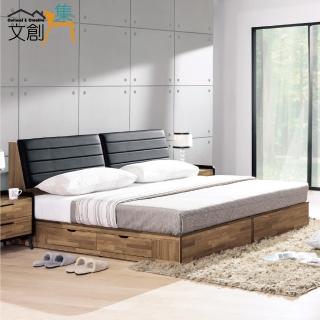 【文創集】皮斯德 時尚5尺皮革雙人三件式抽屜床台組合(床台+艾柏 正三線4D天絲乳膠獨立筒床墊)