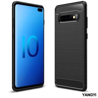 【YANG YI 揚邑】Samsung Galaxy S10 Plus S10+ 拉絲紋碳纖維軟殼散熱防震抗摔手機殼