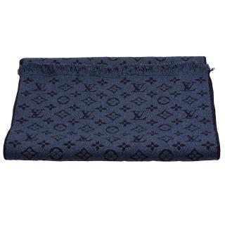 【Louis Vuitton 路易威登】M78525 經典Monogram織花CLASSIC羊毛圍巾/披肩(海軍藍)