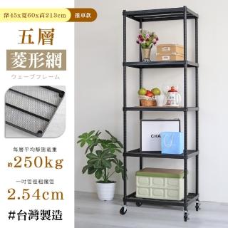 【居家cheaper】荷重補強 45X60X213CM菱形網五層推車(層架鐵架 置物架 波浪架)