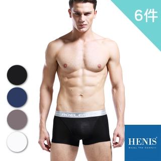 【HENIS】紳士風格簡約透氣四角褲_買3送3超值6件組(無側縫冰絲透氣舒適平口褲)