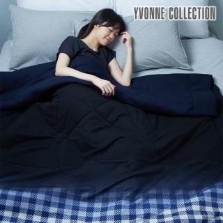 【Yvonne Collection】100%美國純棉基礎型絮片四季被-格子漸層 藍黑(單人)