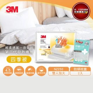 【3M】發熱纖維可水洗四季被NZ250+防蹣枕套2入(雙人加大8x7)
