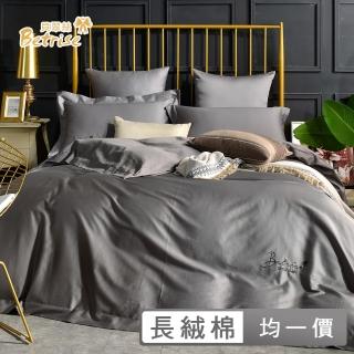 【Betrise】純色系列頂級300織100%精梳長絨棉素色刺繡四件式被套床包組(雙人/加大/多款任選)