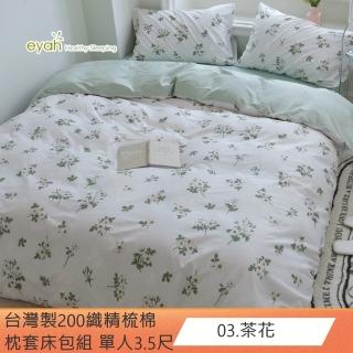 【eyah 宜雅】200織精梳棉兩件式枕套床包組 多款任選(單人加大)