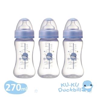 【KU.KU. 酷咕鴨】晶鑽PP寬口葫蘆奶瓶270ml三入組(藍/粉)