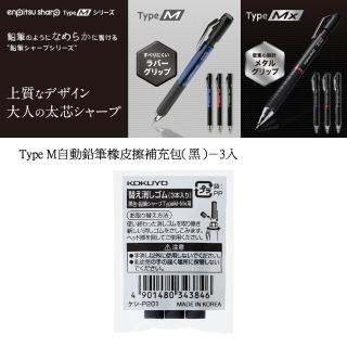 【KOKUYO】Type M自動鉛筆橡皮擦補充包-3入(黑)
