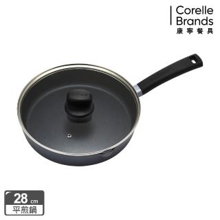 【CorelleBrands 康寧餐具】藍寶石 臻釜鑄造不沾平底鍋28cm(康寧餐盤四件組)