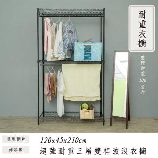 【dayneeds 日需百備】荷重型 120x45x210cm 烤漆三層雙桿衣櫥(置物架/掛衣架/收納架/層架/鐵架)