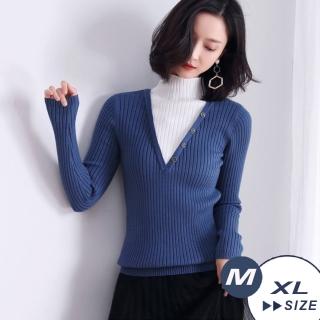【OUBOGJ 歐帛】現貨 假兩件坑條高領針織毛衣-3色(M-XL)