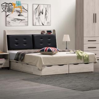 【文創集】戈波 時尚5尺皮革雙人三件式六抽屜床台組合(床台+艾柏 正三線蜂巢式獨立筒床墊)