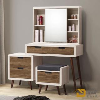 【WAKUHOME 瓦酷家具】Miduo北歐胡桃木4尺伸縮化妝桌椅組 A006-B29-1