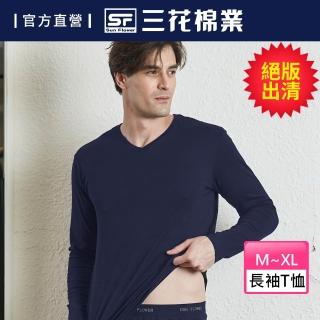【Sun Flower三花】彩色T恤.V領長袖衫.男內衣.男長T恤(深藍)