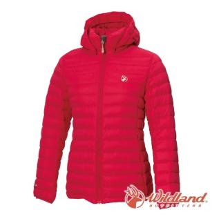 【Wildland 荒野】女 收納枕拆帽極暖鵝絨外套-胭脂紅 0A72103-111(禦寒保暖/羽絨外套/休閒/登山旅行)
