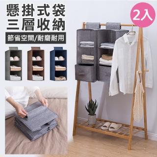 【VENCEDOR】懸掛式衣櫃收納-三格(衣櫃 收納掛袋 折疊懸掛式抽屜收納掛袋 衣櫃掛袋 雜物儲物掛袋-2入)