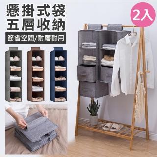 【VENCEDOR】懸掛式衣櫃收納-五格(收納 收納掛袋 折疊懸掛式抽屜收納掛袋 衣櫃掛袋 雜物儲物掛袋-2入)