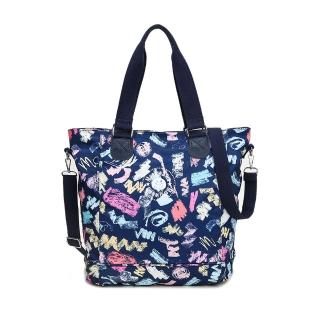 【VIVI SECRET】休閒防潑水肩背斜背二用拖特包(彩色塗鴨)